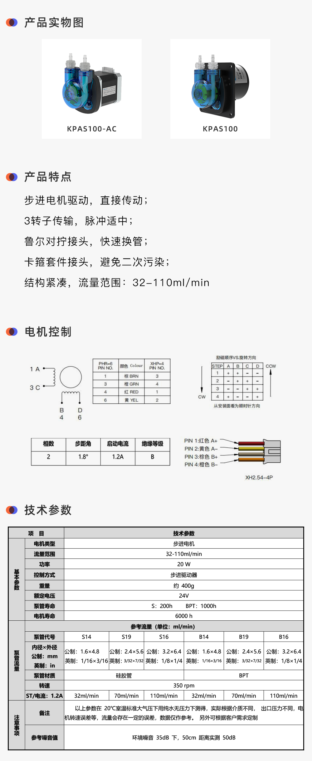 其中,KPAS100采样泵的精确性和可靠性对于监测结果的准确性至关重要,保障了水质评估的可靠性,其流量范围:32-110ml/min。KPAS100试剂泵则负责实现必要的试剂添加,从而完成氨氮的检测过程。试剂添加则要求蠕动泵具有稳定性,进一步增强监测结果的一致性。此外,KPAS100蠕动泵承担了废液排放的重要任务。在样品检测完成后,废液必须及时排放,以为下一次采样做好准备,保证监测系统的连续运行。