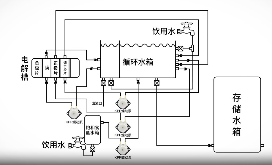 在次氯酸盐水发生器中,卡默尔KPP蠕动泵承担着核心任务——将盐水精准、稳定地输送至电解槽。其精确的流量控制不仅确保了电解反应的稳定性和连续性,还有效提升了次氯酸盐的生成效率。