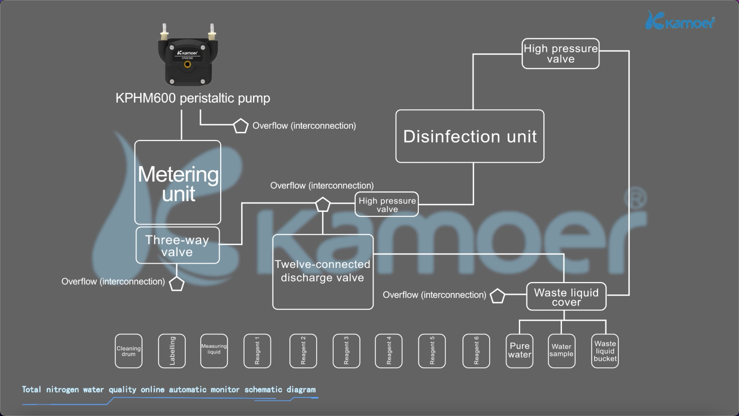 Combined with the application of peristaltic pump KPHM600, the online automatic monitor of total nitrogen water quality realizes real-time and accurate monitoring of water quality, which provides an important means for protecting the water environment. Faced with the seriousness of water pollution, we urgently need efficient monitoring equipment and technology to provide timely data support and protection measures. As a key component, the peristaltic pump KPHM600 ensures the accuracy, stability, and automation of the sampling process, which lays a solid foundation for the application of the total nitrogen water quality online automatic monitor.