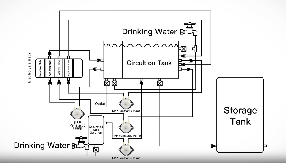 Within sodium hypochlorite generators, the Kamoer KPP peristaltic pump plays a crucial role by delivering brine to the electrolytic cell. With precise flow control, it ensures stable and continuous operation, improving the efficiency of sodium hypochlorite production.