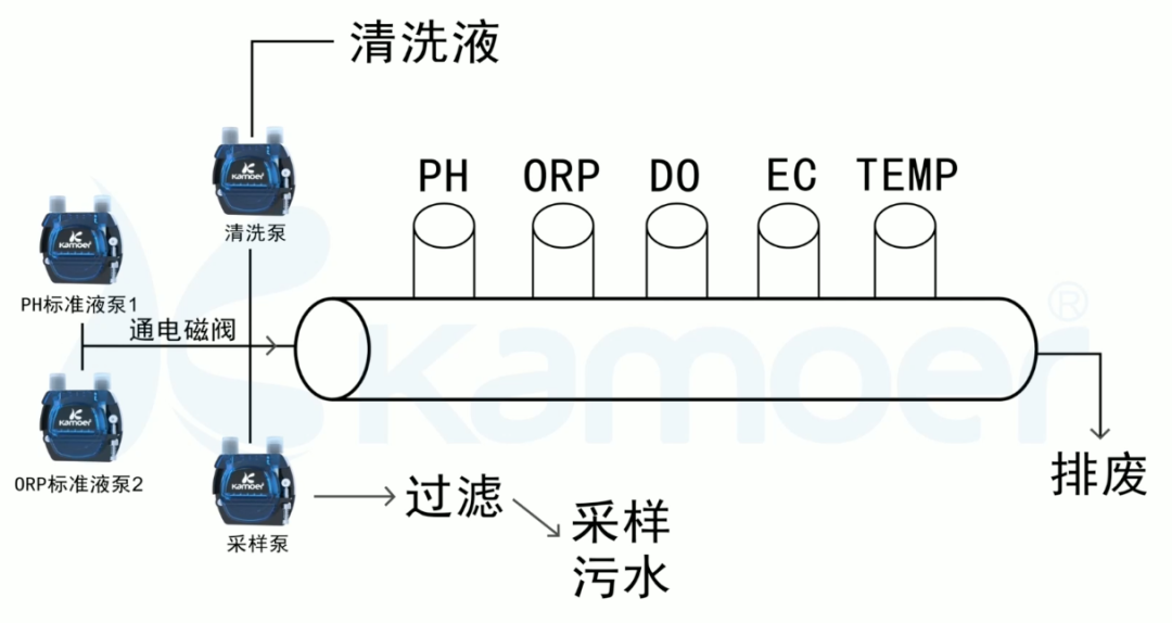KCM蠕动泵在多参数水质在线检测系统中的应用非常重要。它能够确保采集到的水样准确无误地被传感器检测到,提高水质检测的准确性和时效性,为保障人们的生命健康提供了有力的保障。