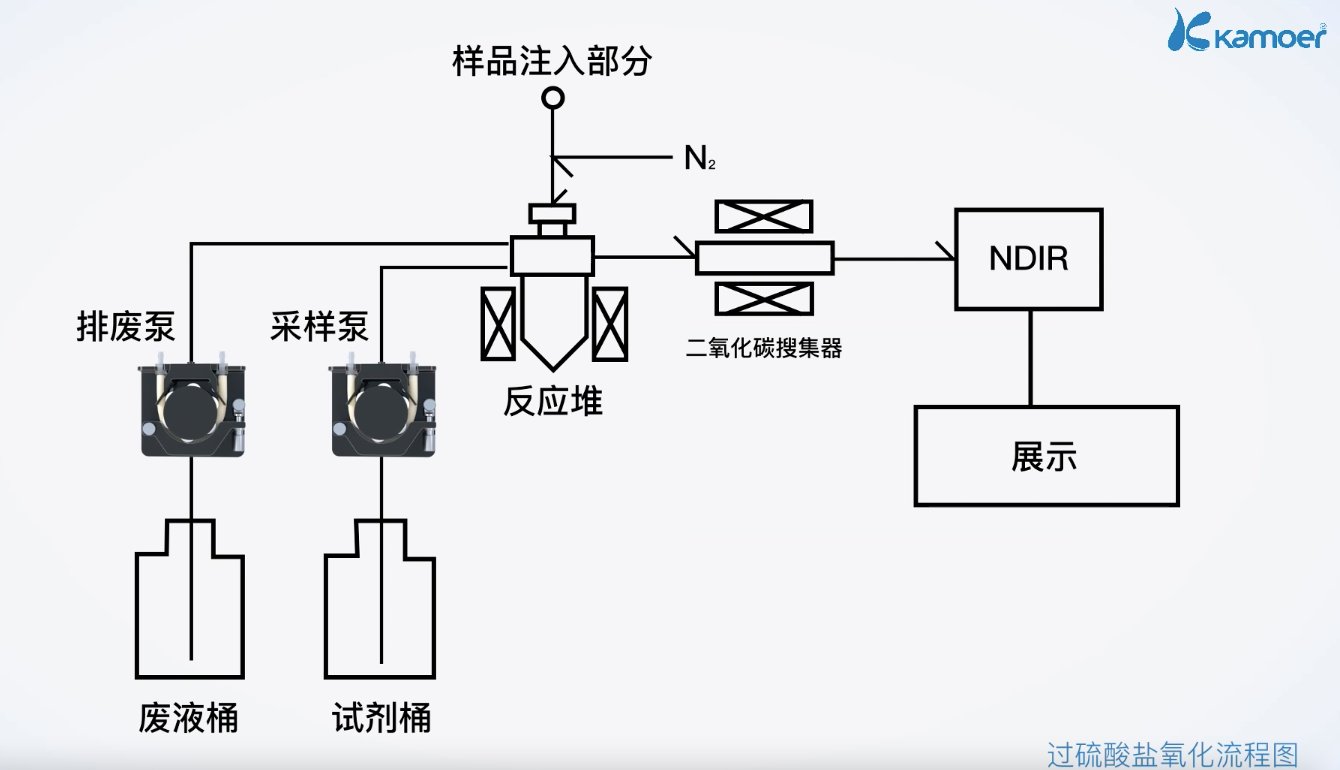 - CO2检测:氧化反应后产生的CO2被收集并传送到CO2检测单元。常用的CO2检测方法包括红外光吸收法或者导电检测法。这些方法可以测量CO2的含量,从而确定样品中的总有机碳含量。